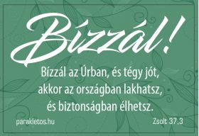 Bízzál az Úrban, és tégy jót, akkor az országban lakhatsz, és biztonságban élhetsz. Zsolt 37,3