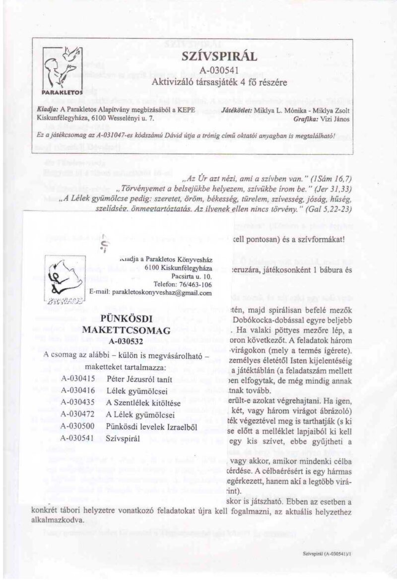 Pünkösdi ünnepkörhöz és a Lélek gyümölcséhez kapcsolódó válogatás a 2003-ig megjelent makettekből.